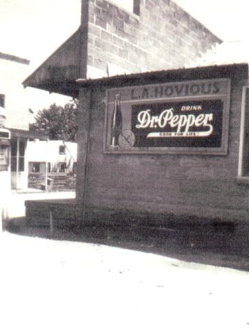 Children: At left: side of Jack Hovious' store. At right: lane in front of the store, and the bank formerly operated by Booth Hovious. Thanks to John R. Hovious Jr., Jim Hovious, Paul Hofius and Frank Dickerson for contributions to this research. Thanks to Marie Hovious Moser and Jean Hovious Lloyd for providing the first, fourth and fifth photos, and to Sue Perkins for the rest.